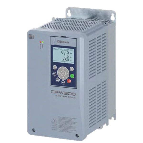 The CFW900 is a high-tech VFD for driving and controlling three-phase induction and permanent magnet motors. It offers excellent static and dynamic performance and highly precise torque, speed, and position control. It can be used in a wide range of applications due to its high overload capacity. Thanks to its technology, the CFW900 variable speed drive provides energy savings, safety, increased productivity, and quality in the process network in which it is implemented. It allows quick and easy access to the application information and configuration settings. Using a menu structure, the new interface of the CFW900 line offers an unprecedented user interactive experience, providing settings and configurations with a detailed description of the parameters right on the HMI, in addition to event logs with date and time and a setup wizard.