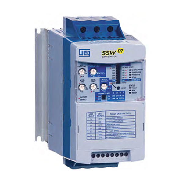 Soft Starters are static starting devices, designed for the acceleration, deceleration and protection of the three phase, electric induction motors through the control of the voltage applied to the motor. The SSW07, with DSP control (Digital Signal Processor), was designed to provide great